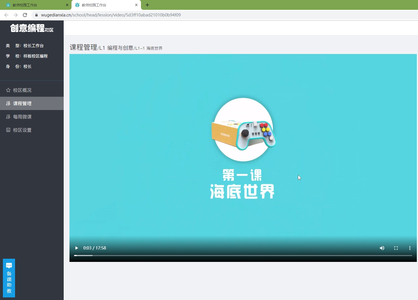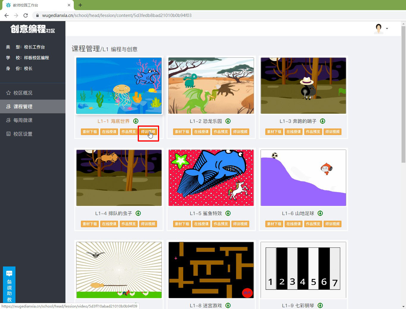 * ## 点击【 课程管理 】、L1 编程与创意下的 【 师训视频 】