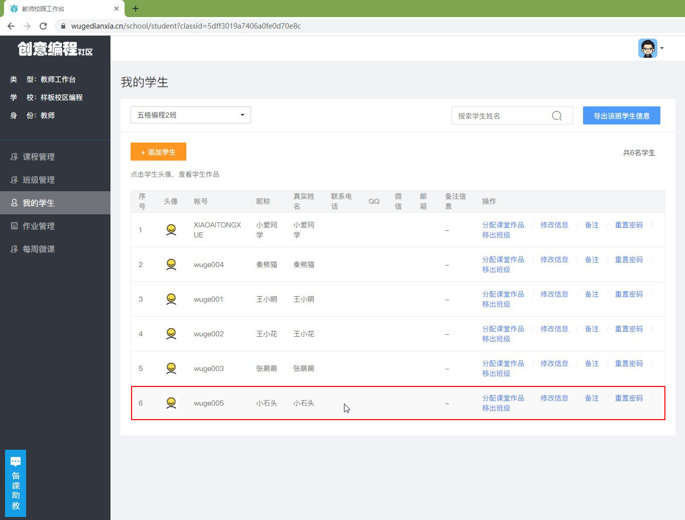 > ## 当一个班里需要加入一位新同学时,可以用单账号添加的功能分配账号