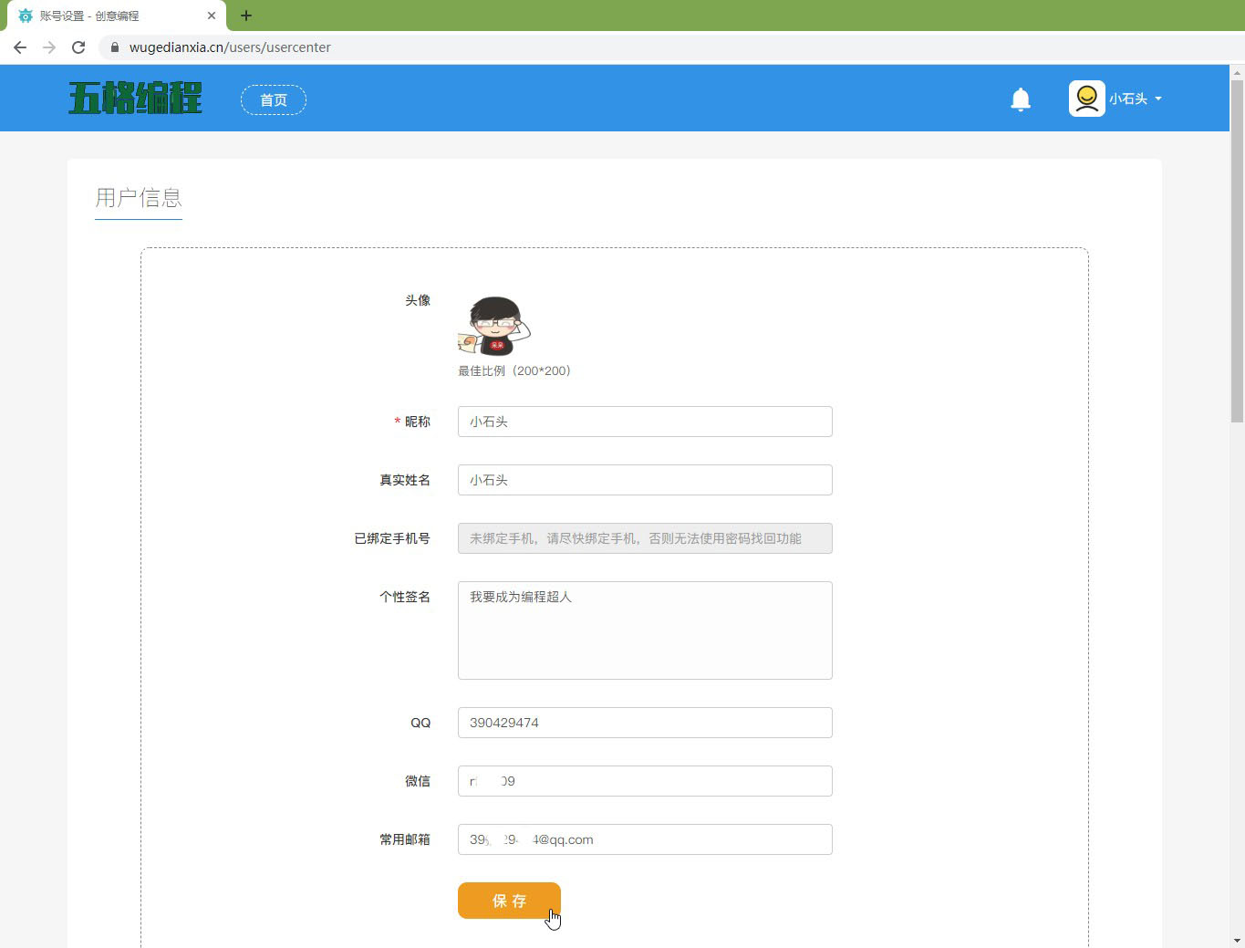 ## 点击右上角小石头,点击 【 账号设置 】 选项 ![](https://img.kancloud.cn/cc/c8/ccc830ab42859230509178d004c1f49f_1363x1037.jpg) ***** * [ ] ## **完善用户信息,点击【 保存 】按钮** *我们以这个头像为例* ![](https://img.kancloud.cn/34/ce/34cecbd8a73bb248ea653f84960889e7_200x200.jpg) ***** ![](https://img.kancloud.cn/46/6f/466fa070e812f4c83d6c48104deeecf0_1365x1039.jpg) ***** * [ ] ## **绑定/解绑手机** ### **a. 绑定手机,方便自己登录、找回密码等操作** * 输入手机号,点击**发送验证码**按钮 ![](https://img.kancloud.cn/71/0b/710bd32b6731c34b5de7b04817c7daa1_1365x442.jpg) ***** * 输入验证码,点击**绑定**按钮 ![](https://img.kancloud.cn/d8/9c/d89cab2396d4a22c81cb0f7b2f28feb5_1367x438.jpg) ***** * 绑定成功 ![](https://img.kancloud.cn/99/96/9996745514152fa355c8b13113bb5591_1366x431.jpg) ***** ### **b. 解绑手机:如果您想更换绑定手机号可以进行如下操作** * 输入原绑定手机号,点击**发送验证码**按钮 ![](https://img.kancloud.cn/07/4e/074e545738e320697c38d331d1f94d86_1365x445.jpg) ***** * 输入验证码,点击**解除绑定**按钮 ![](https://img.kancloud.cn/43/d5/43d5b93304e21c459d5c17d998011d7c_1366x439.jpeg) ***** * [ ] ## **修改密码** 初始密码为:111222。您可以在此处修改密码。 ![](https://img.kancloud.cn/62/2a/622a7e533e43bf50b0aaeb35b98219b2_1367x445.jpg) *****