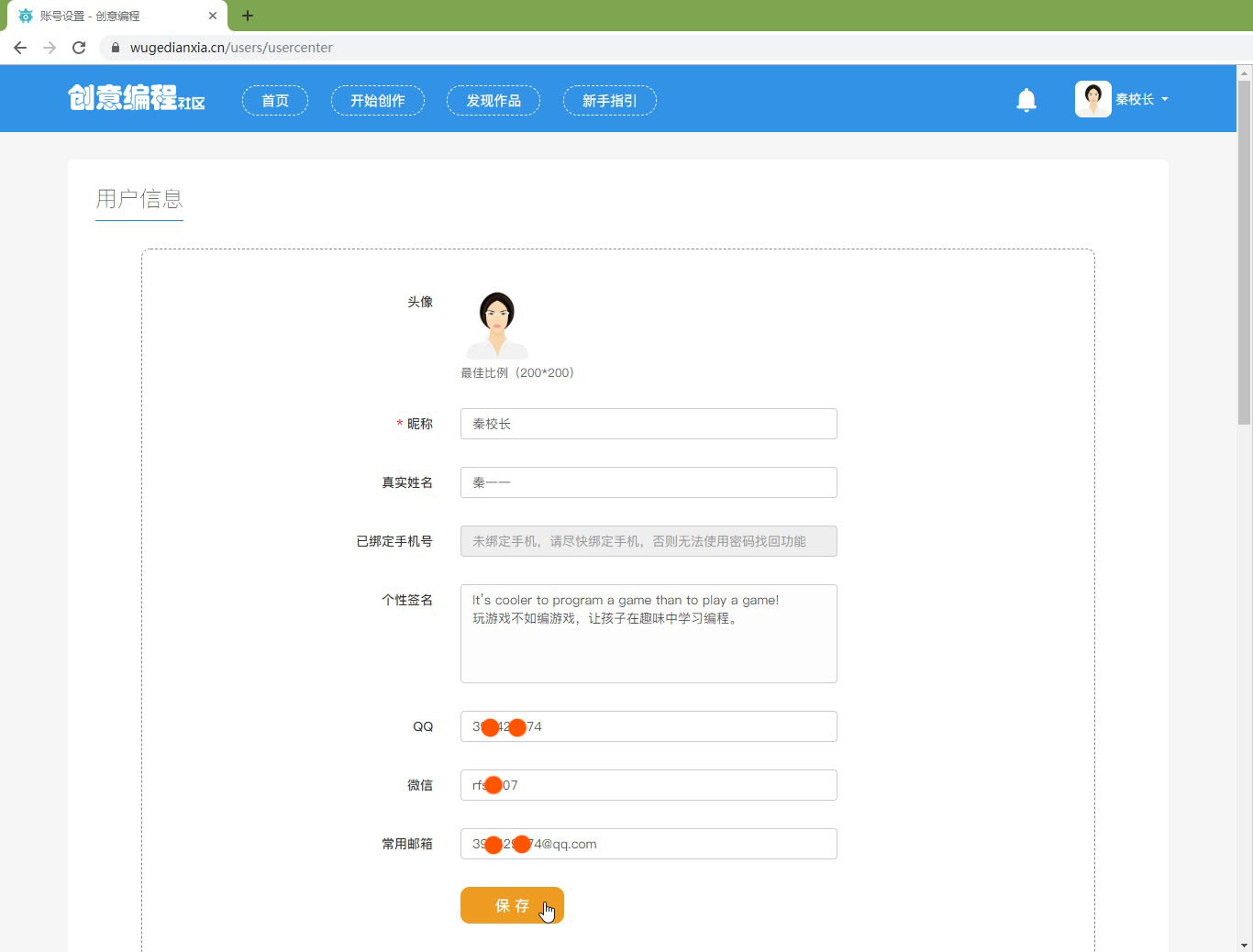 * [ ] ## **完善用户信息,点击【 保存 】按钮**