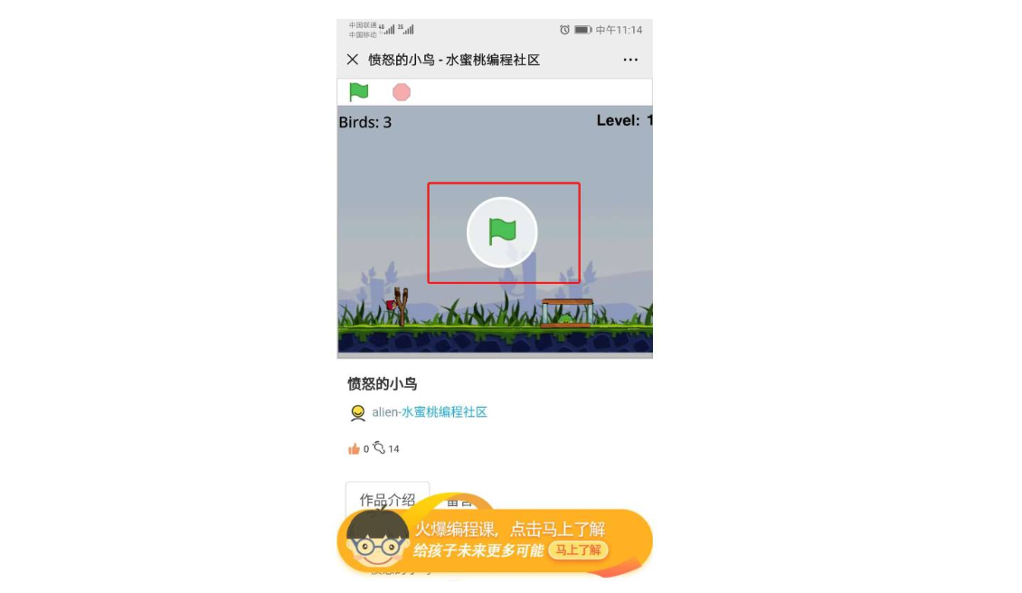 * ## 点击小绿旗,可以在手机上体验作品