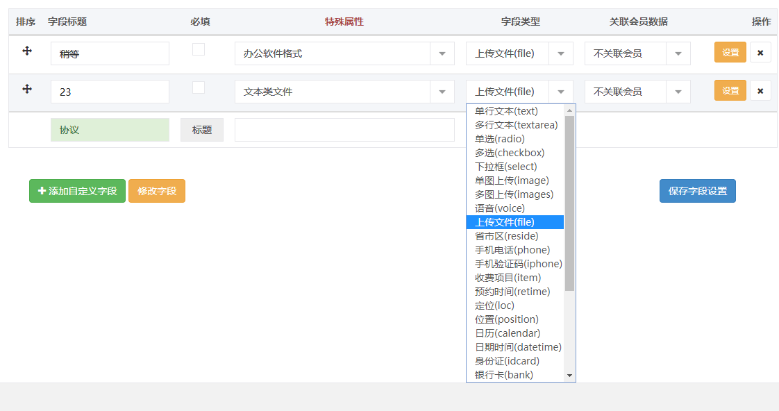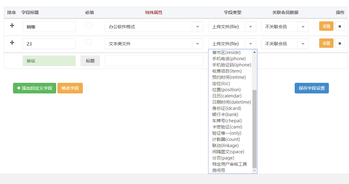 - 自定义字段