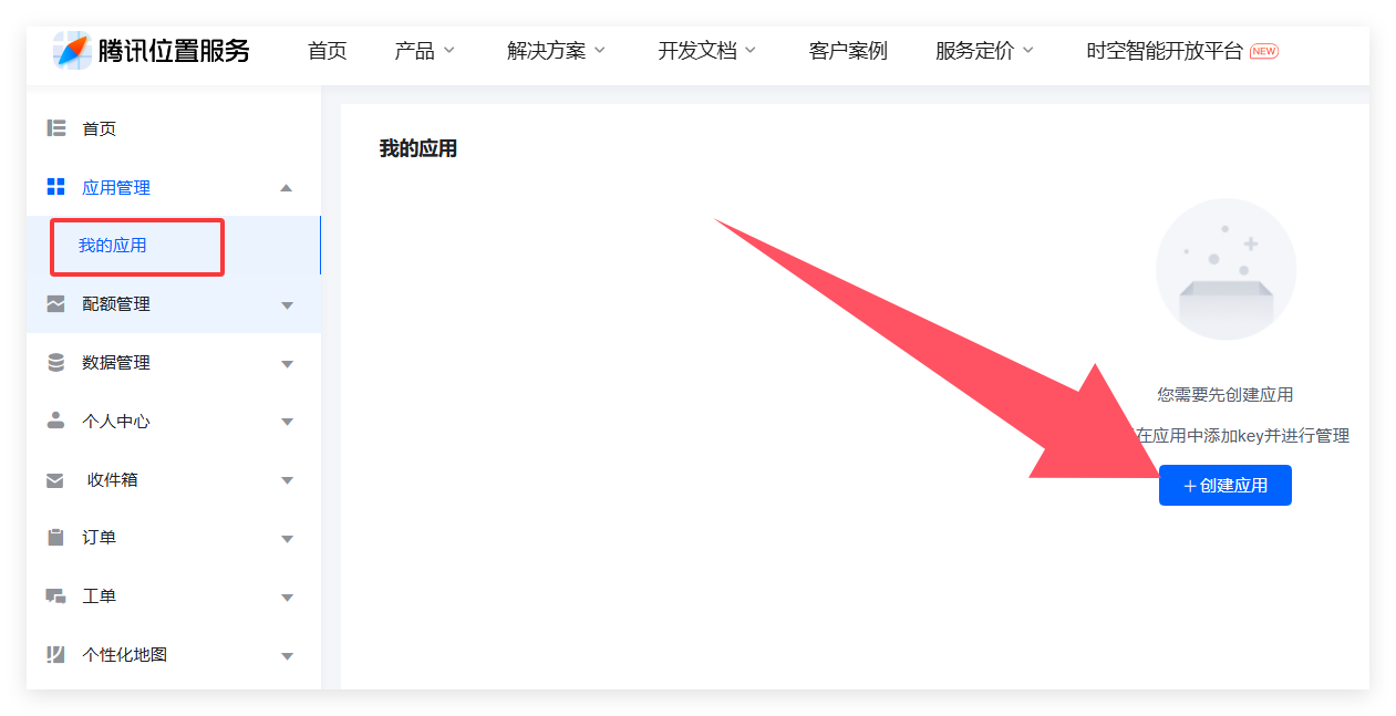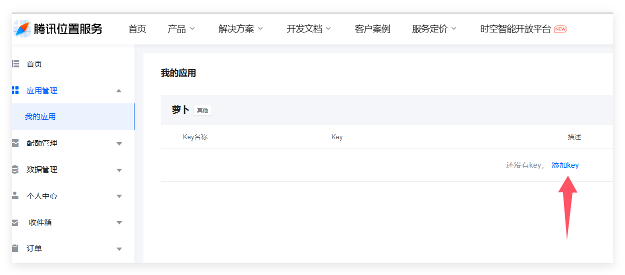 请到https://lbs.qq.com/ 注册账号,新建应用获取KEY