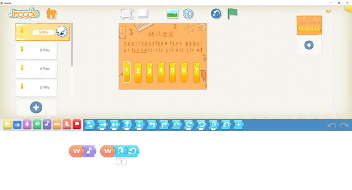 ### 1. 用鳄鱼夹线连接水果和鳄鱼板,这里设置7个水果钢琴的声音do/rui/mi/fa/sol/la/si,把水果依次排开,分别对应鳄鱼板的w/a/s/d/f/g/↑键位