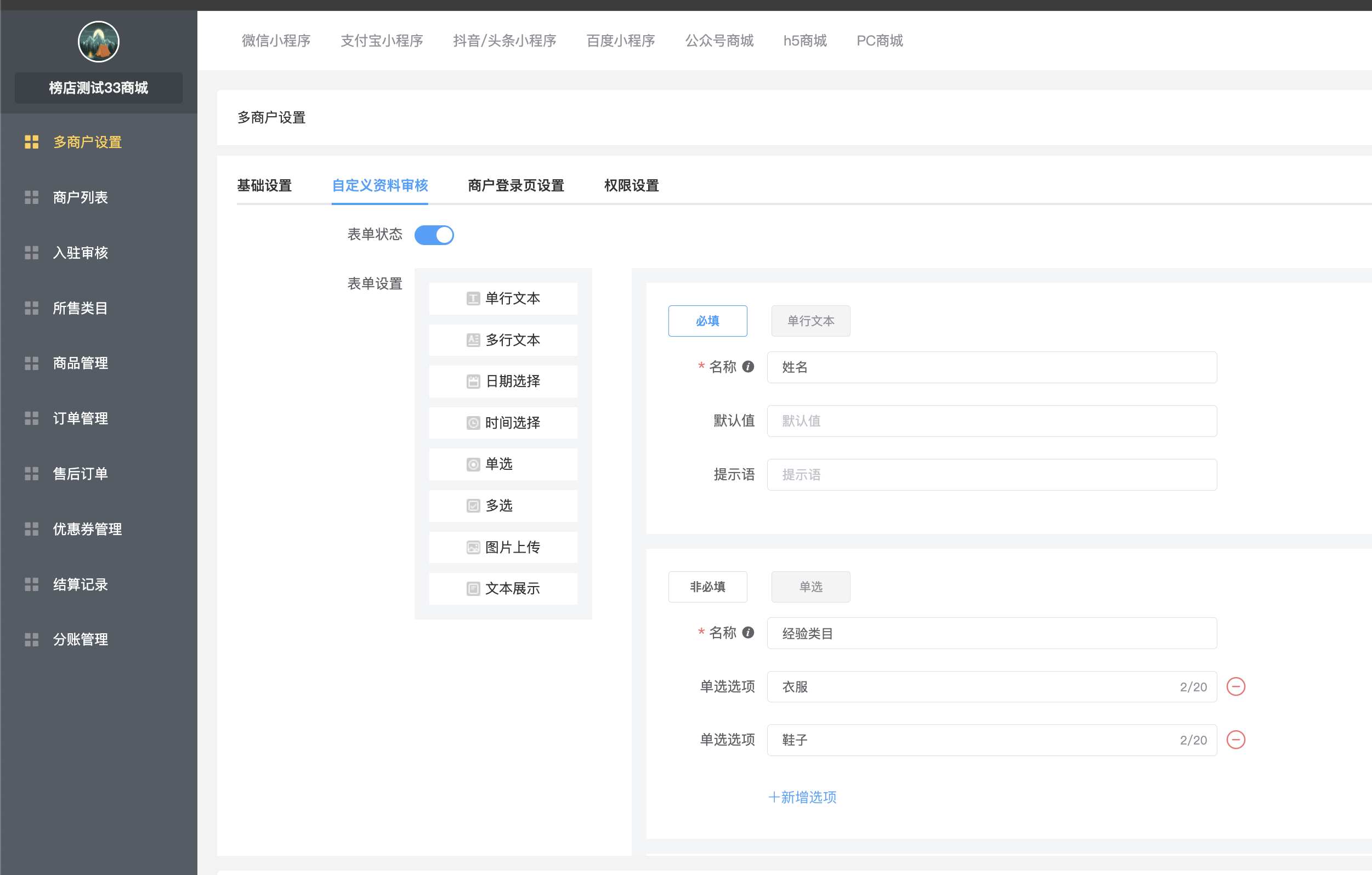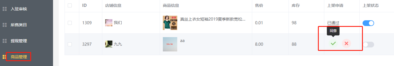 * 商品上架审核(开启)(在多商户-->商品管理里查看)