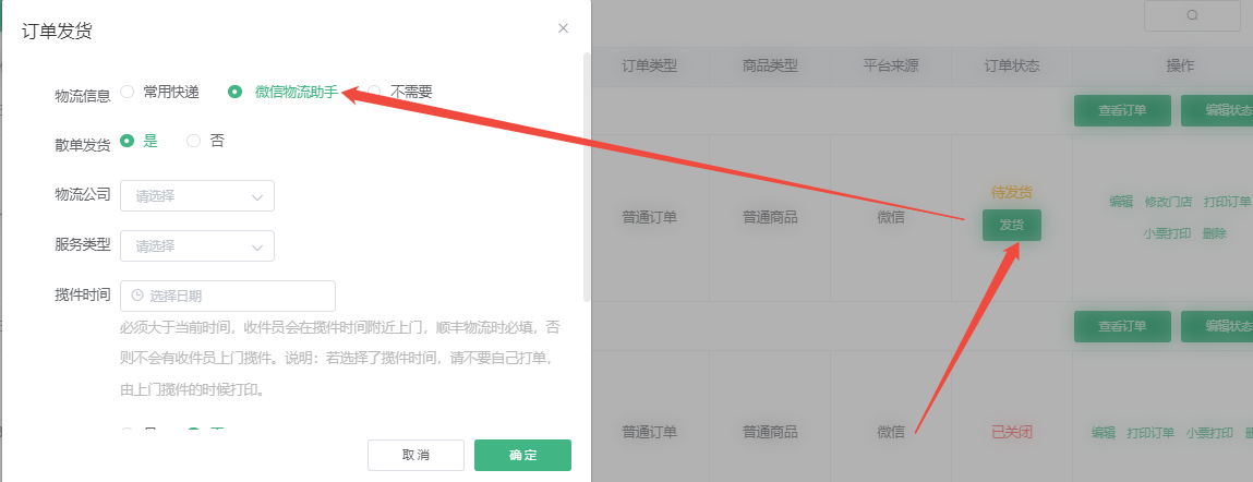 设置完成后即可下单,发货选择微信物流助手,发货后,即可生成快递单号,打印面单