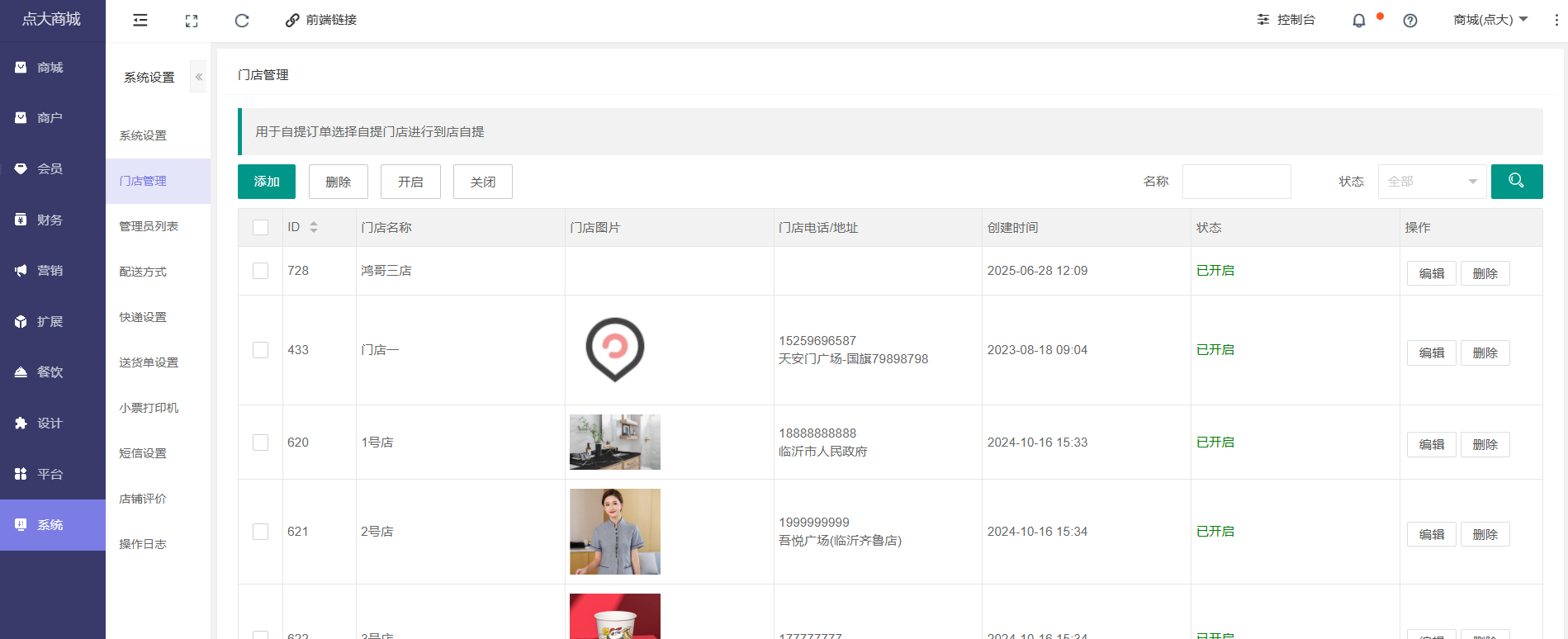 主要用于到店自提订单下单时的门店选择及给管理员设置门店核销权限用于订单扫码核销
