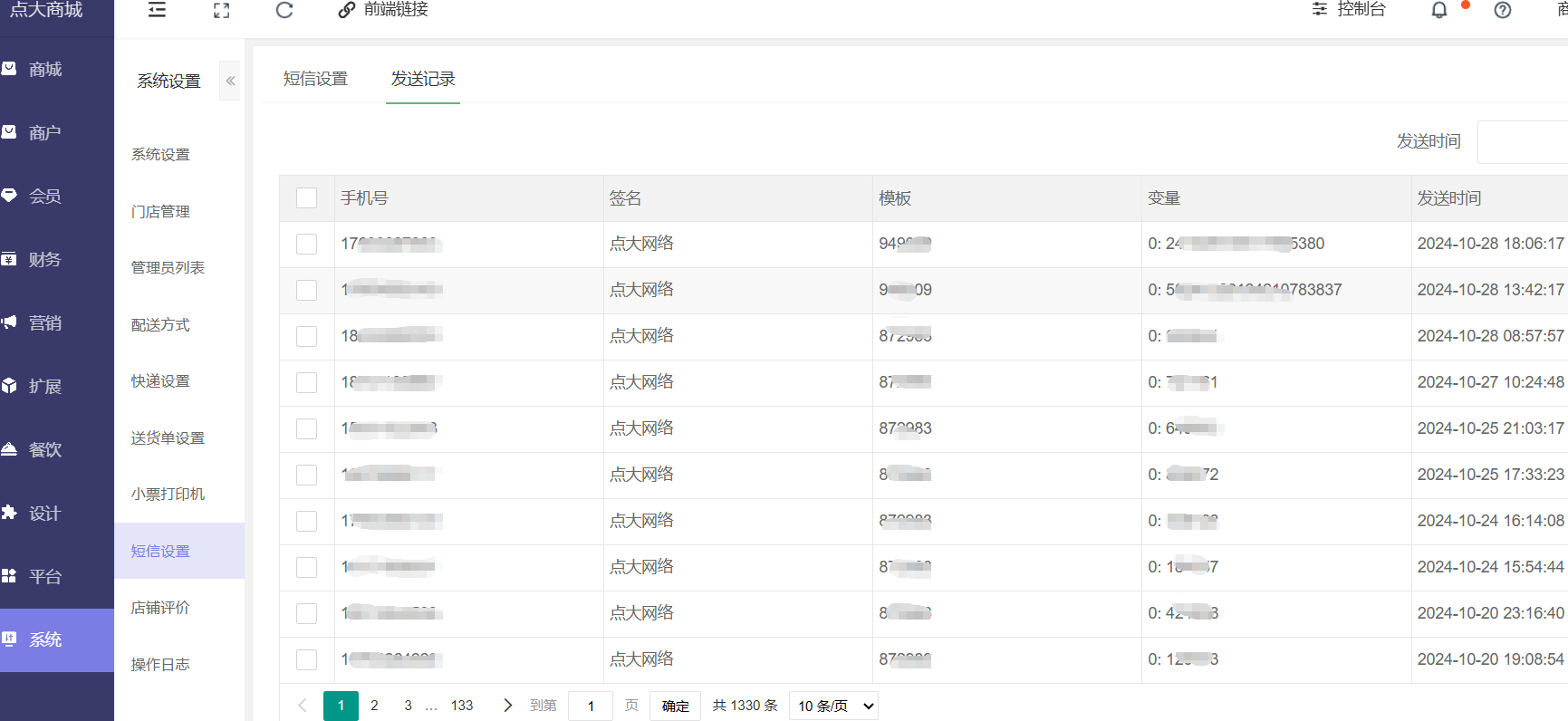 注意:短信模板设置里填写的是模板id,不是模板内容示例,短信模板按照后台的模板内容示例申请