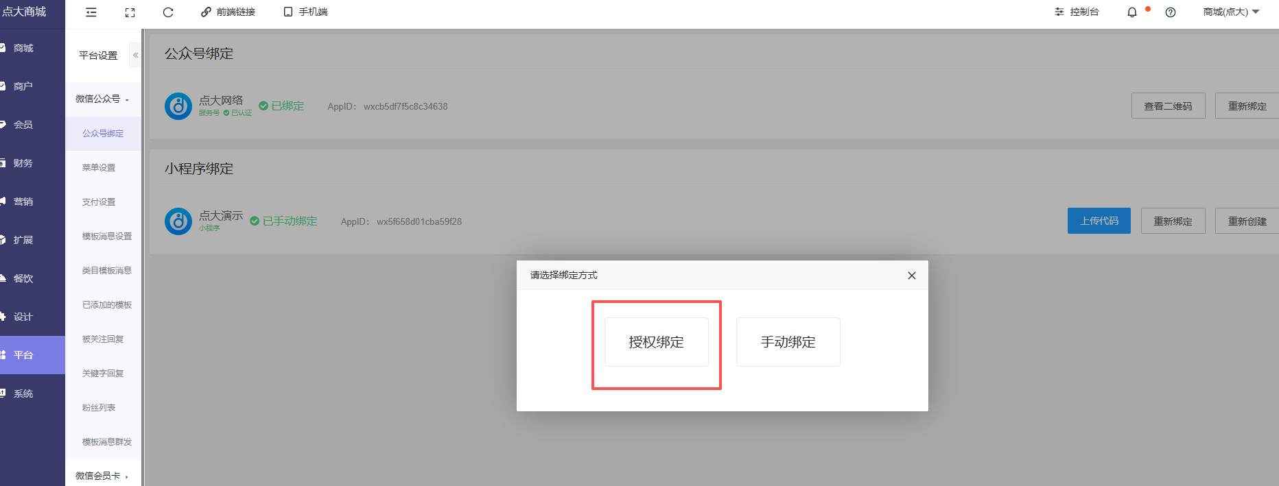 注:授权绑定和手动绑定可根据使用情况自主选择(**建议新用户先选择手动绑定**)
