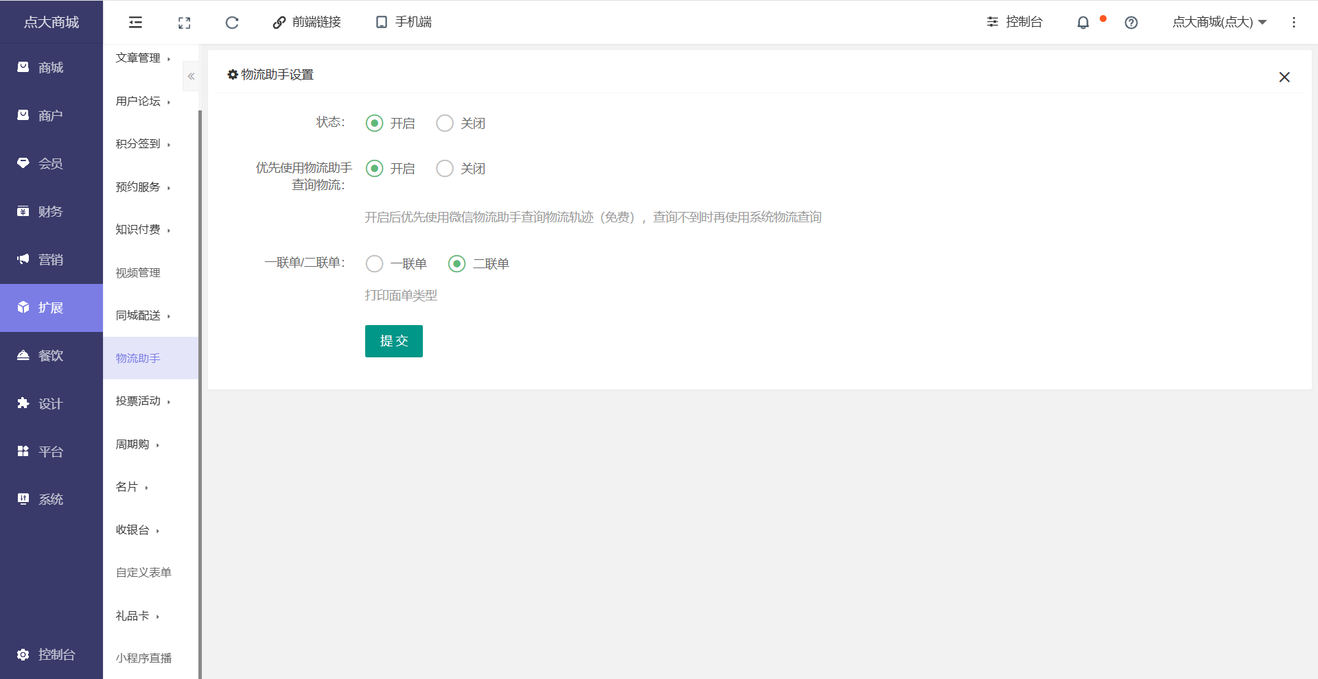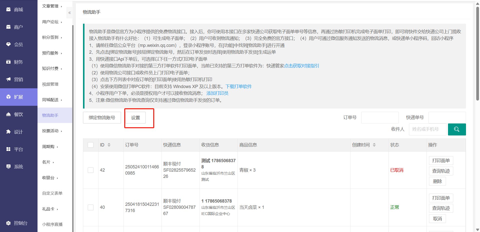 设置物流助手