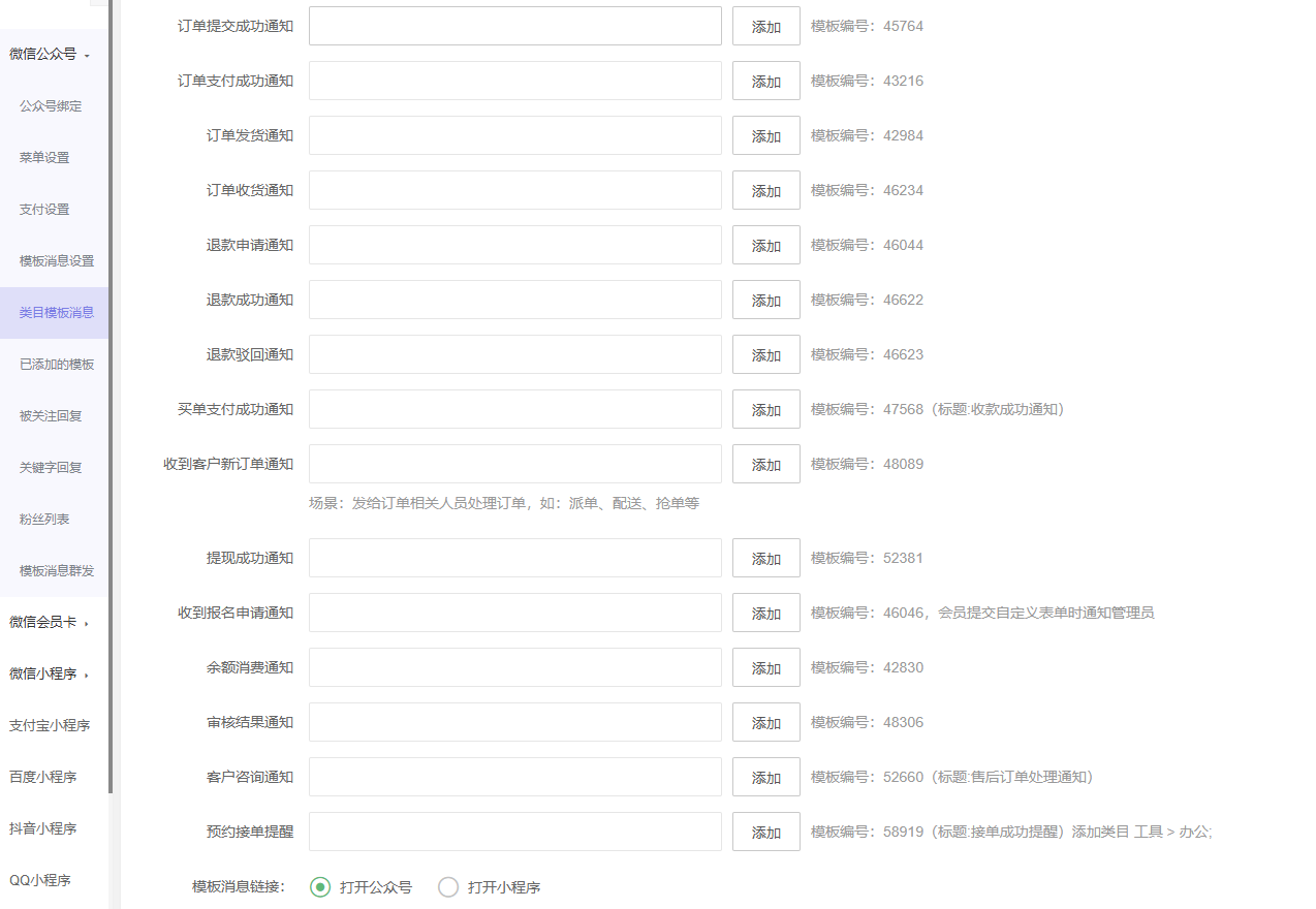 - 模板消息设置