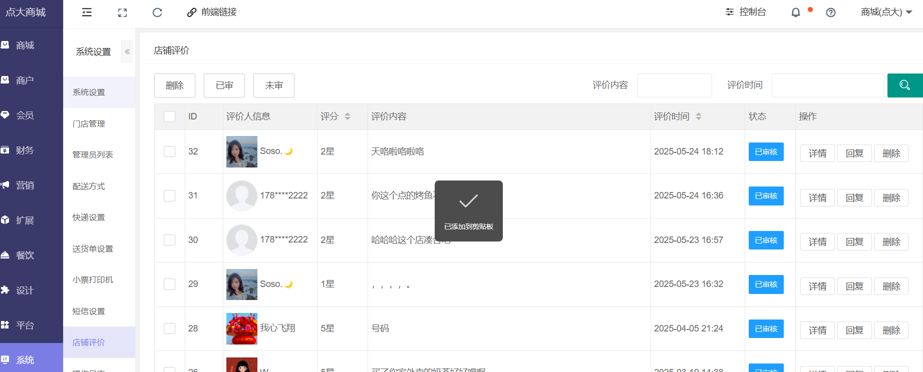 展示店铺评价