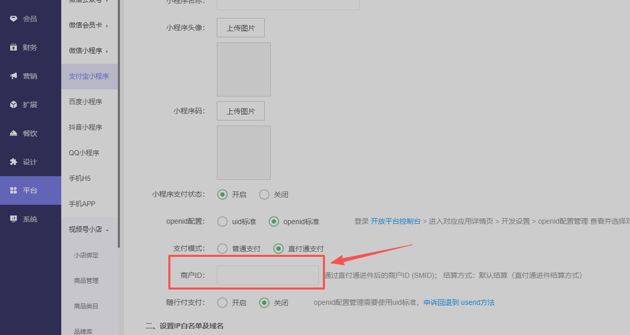 若未开通支付宝小程序直付通支付,先开通: