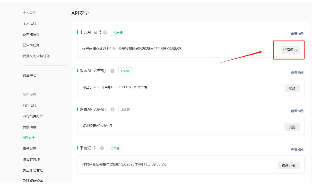 证书序列号获取位置:商户号--API安全--申请API证书--管理证书--证书序列号