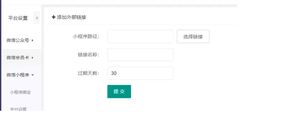 平台---微信小程序---外部链接---设置小程序路径,链接名称
