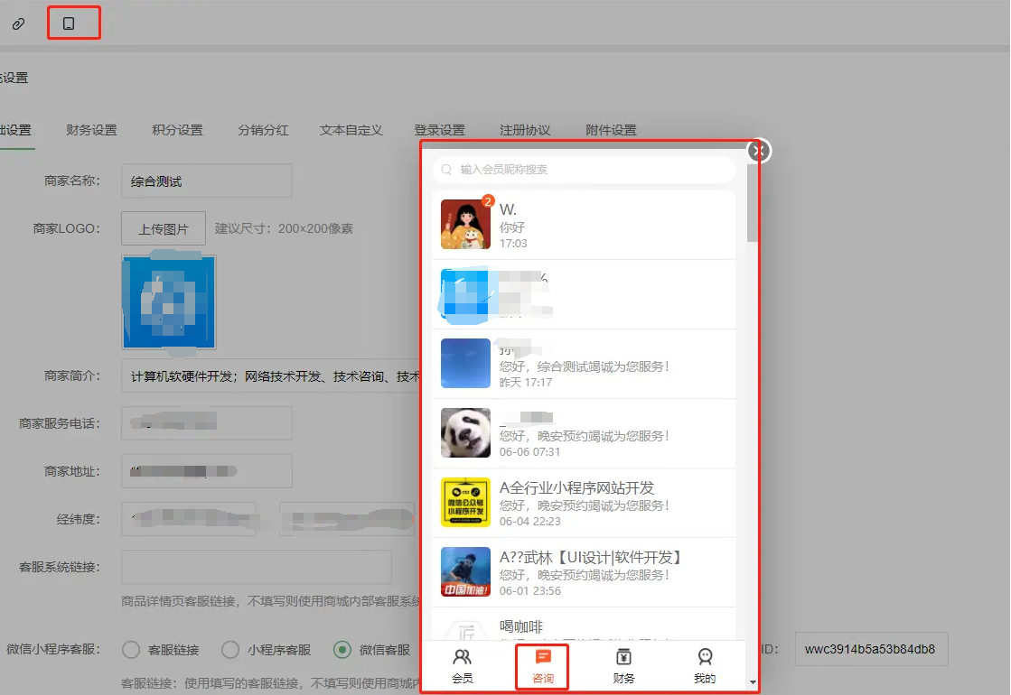 第三步:登录管理员手机端,可以查看用户咨询信息